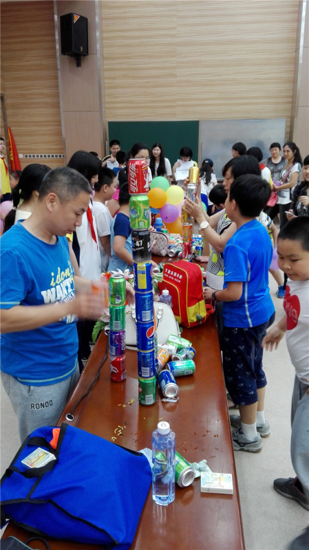 发表时间:2016-06-02 10:22作者:上官翰明 我校开展庆“六一”亲子活动 2016年6月1日下午,学校教职工的孩子们在家长带领下兴高采烈的来到活动现场(学校正兴楼多功能厅),此时天空艳阳高照,骄阳似火,室外温度已经高达35℃,而学校少先队早早地布置好了活动场地,开好了空调。 在温馨的活动现场,孩子和家长参加了夹气球、你划我猜、两人三足、易拉罐积木、小脚踩大脚的活动,小朋友们难得相聚一起,还三五成群自己玩起了游戏,家长们也互相交流教育方法,当孩子们领到一份六一礼物时更是露出了灿烂的微笑。