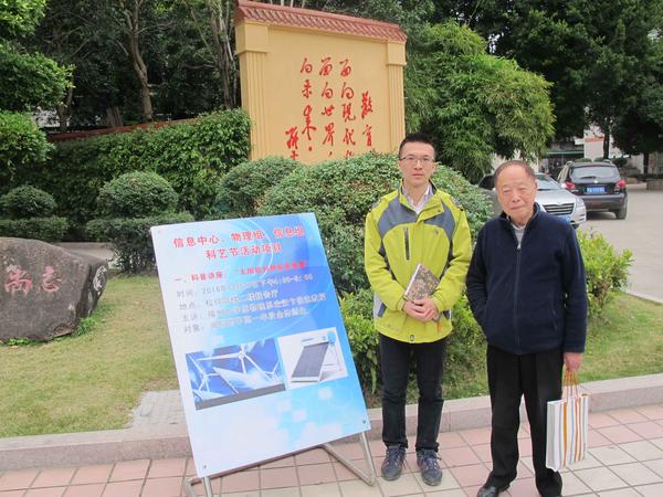 2016年的科艺节由信息中心牵头物理组和信息组共同打造了本年度的科艺节活动,本次活动分为3个方块进行。 1、12月27日下午在校综合楼报告厅由原福州大学物理系主任卞伯达教授给我校高一师生开展了“太阳能利用的前景展望”的科普讲座,讲座生动具体,深入浅出地介绍科学前沿的科普知识。