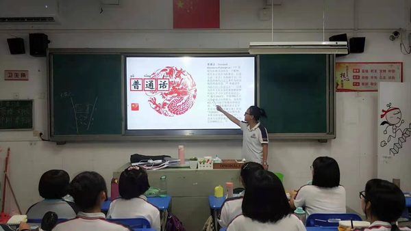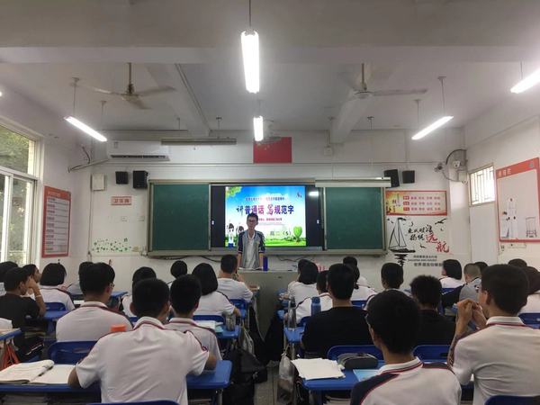 4、在教务处配合下,在巡课时对老师们上课时使用普通话和规范汉字教学的情况进行抽查。教科室在老师们的公开课、说课活动中也有普通话和规范汉字方面的评比要求。 5、在德育处配合下,组织每个班级开展以推普周为主题的班会活动。各班在班主任的组织下,开展了形式多样、丰富多彩的推普周主题班会活动,如诗文朗诵、规范汉字辨析、书法鉴赏等。通过此次主题班会,同学们进一步提高了对说好普通话和写好规范字的认识,达到了预期的效果。