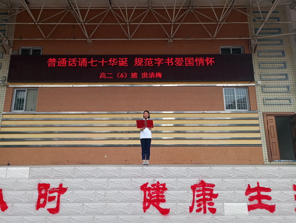 高二(6)班洪清梅同学做推普周国旗下讲话