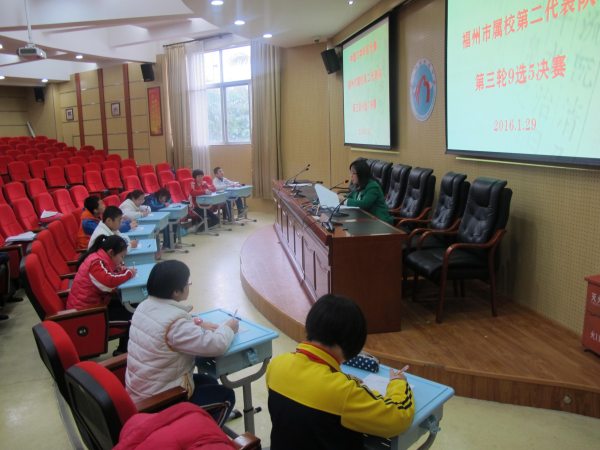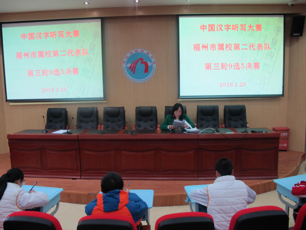 发表时间:2016-01-29 11:00 1月29日下午,中国汉字听写大会福州市赛区市属校第二代表队9进5选拔赛在我校举行。这次比赛将优选出5名学生组成第二代表队参加今年3月份福州市级选拔赛。 作为市属校第二代表队9进5选拔赛的承办学校,我校高度重视这次选拔赛的组织工作。俞勇校长、谢海泓书记、陈祁罕副校长、连宇副校长都对该项比赛筹办工作进行指导,语文组老师精心筹划和安排,保证了比赛活动的有序进行。 从2015年11月底初赛起,我校已在初一、初二100多名学生中通过多次的淘汰赛和排名赛,优中选优,选出八名选手代表我校参加市属校第二代表队选拔赛。 下午2时30分,比赛开始。选手们屏息凝神、认真倾听、低头冥思、奋笔疾书,赛场上充满紧张激烈的气氛。本次听写大赛选拔赛共听写100个词语,历时1个多小时。比赛结束后,评委老师们对选手的作答进行认真批阅,根据分数高低做了排名。最后,日升中学的陈锦柔同学、我校的唐采薇同学、华伦中学的张安东、陈诺、林思腾同学分获前五名,将作为福州市属校第二代表队成员参加市级选拔赛。 通过本次听写大赛,旨在进一步唤起同学们对传统语言文字的热爱,既让他们感受到书写汉字的乐趣和学习知识的快乐,也使他们从现在开始,从一笔一划做起,为继承和弘扬中华民族传统文化尽一份力量。