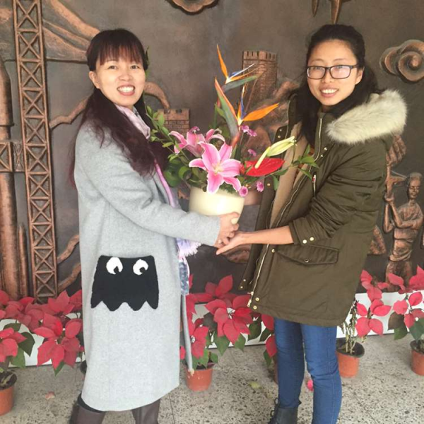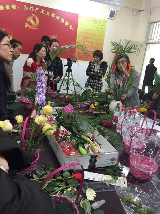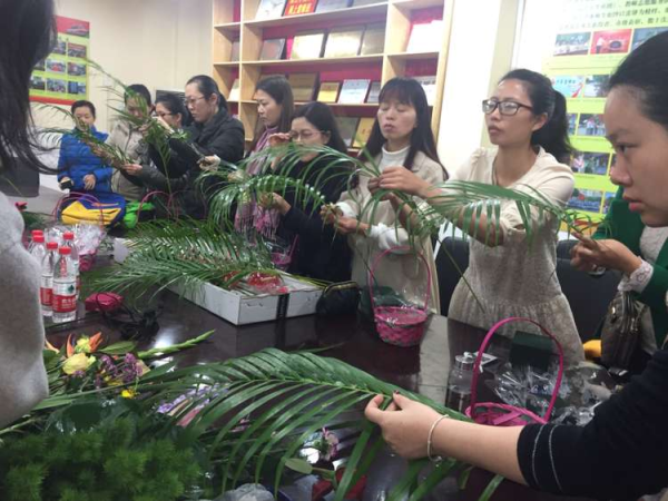 发表时间:2017-02-26 11:46作者:曾毓平 迷人的春天慷慨地散布着芳香的气息,在闽江学院附中校园里正举办女教职工艺术插花系列活动,它俨然是一场花卉的盛宴。本次系列活动邀请到高级花艺师陈晞文老师,她现场教授插花的制作、插花的色彩配置、插花艺术风格、插花的护理与鉴赏等知识,同时她以独特的视角,展示了插花艺术的鲜活,让我们感受到生命的盎然与喜悦。