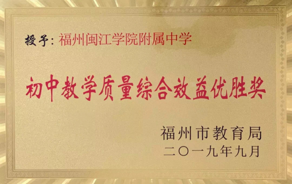 12月17日上午,在市教育局召开的关于2019年初中教学质量综合考评通报会上,闽江学院附属中学被授予“初中教学质量综合效益优胜奖”和“初中教学质量连续二届进步奖”。陈晨校长代表学校接受市教育局表彰。
