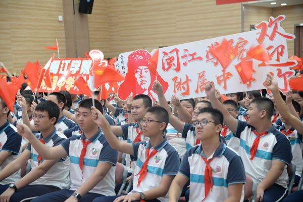 “学习雷锋好榜样,立志强国勇争先,闽江学院附属中学欢迎您!”整齐划一的口号在正兴楼多功能厅响亮回荡着······