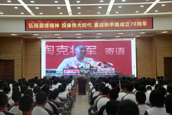 《解放军报》原副总编,《雷锋》杂志总编陶克将军在主会场通过现场互动,为闽附的小雷锋寄语。在主会场活动结束后,专程到闽江学院附属中学现场考察,对闽江学院附属中学的学雷锋志愿服务给予高度评价,并欣然题词。
