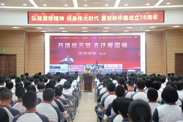 为响应习总书记对青少年的寄托,为新中国成立七十周年献礼,中国航天系统科学与工程研究院开展《航天智慧教育大讲堂》系列活动,闽江学院附属中学分会场以“传承雷锋精神 弘扬时代新风”为主题的活动在9月9日下午我校多功能厅拉开序幕,我校7个雷锋班的全体小雷锋们齐聚一堂,用热情点燃全场,用真情分享多年的志愿者服务点滴。