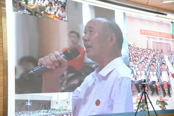陶 克 《解放军报》原副总编,《雷锋》杂志总编 活动一开始,初三(5)班游逸飞同学代表所有雷锋班的小雷锋们,与所有会场的老师同学们一起分享他做为一个小雷锋的感受。在平凡中坚持,在坚持中成长,从2003年开始,16年不懈坚持的闽附小雷锋们,利用课余时间,走进社区,关爱孤寡老人,维护交通文明,宣传知识,爱绿护河……力所能及帮助他人,服务社会。2017年我校被中宣部评为第三批“全国学雷锋示范点”。游逸飞同学分享了他平凡坚持中的志愿服务活动的点滴也是每个闽附小雷锋的日常。
