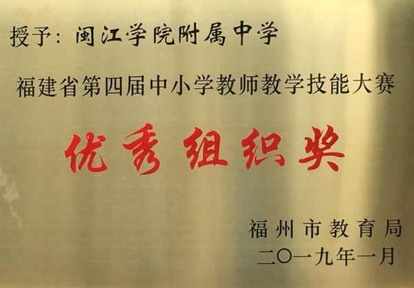 我校被评为福建省第四届中小学教师教学技能大赛“优秀组织奖” |