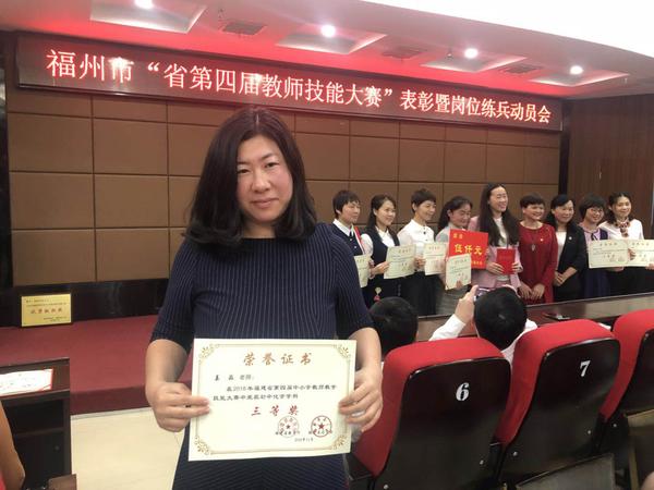 发表时间:2019-05-13 08:30 5月11日上午,福州市教育局在华侨中学召开“福建省第四届中小学教师教学技能大赛”获奖表彰暨岗位练兵动员会,对在省第四届中小学教师教学技能大赛中获奖的老师和选派单位进行了表彰。我校姜淼老师经过层层选拔,在2018年11月举行的福建省第四届中小学教师教学技能大赛中,获得初中化学三等奖的佳绩,我校被评为福建省第四届中小学教师教学技能大赛“优秀组织奖”。