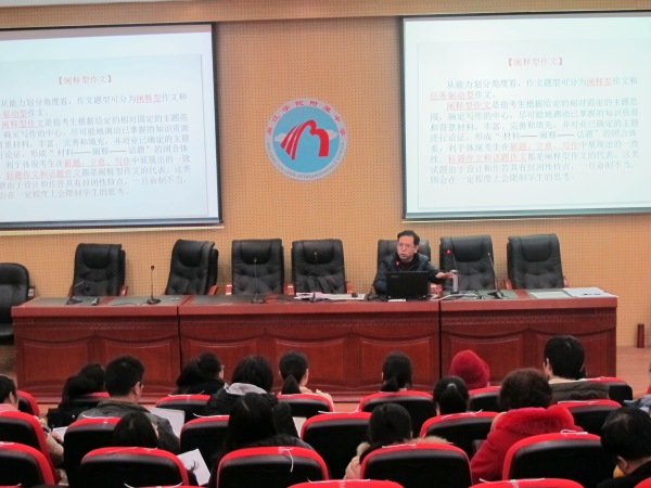 教育研究院李智明老师做了题为“任务型材料作文命题实践与思考”的专题讲座