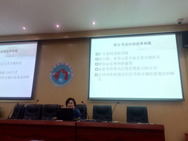 教育研究院蔡勤老师向培训学员介绍2017年全国卷新考纲修订的情况