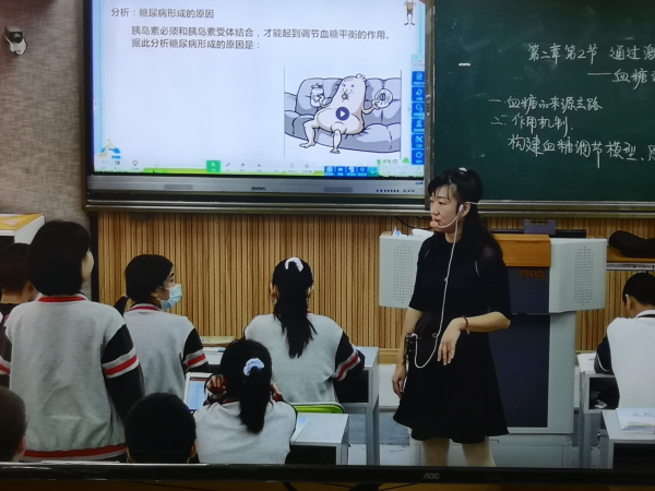 高中生物 陈佳晶老师执教的《血糖的调节 》,以问题串贯穿整个课堂 。课上利用电子教室软件,将视频资料以及同学们分组制作的研究成果资源推送到每一台学生机,方便学生间同步学习和交流,使得课堂师生的互动更加深入。同时,每一个同学都可以在ipad上使用软件,构建思维导图 。利用希沃手机授课助手,直播到大屏幕和每一台学生端,引发学生思考质疑,提出问题,教师引导全体同学充分讨论,课堂更高效。体现了生命观点 ,社会责任 ,稳态与平衡的生物学核心概念及价值观 。