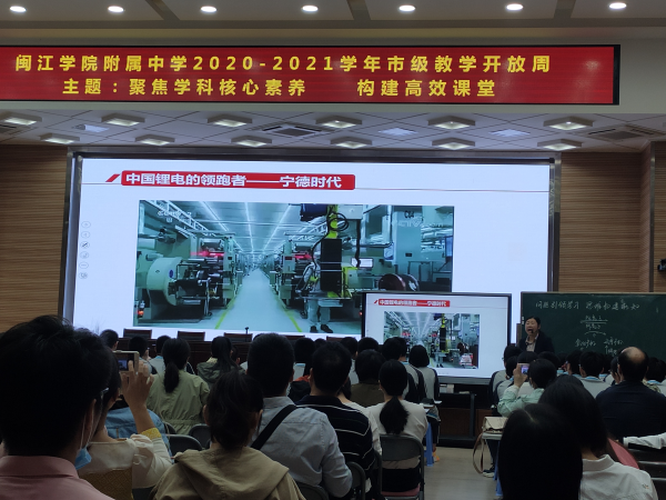 发表时间:2020-10-22 14:19 问题引领学习,思维构建新知 —— 2020-2021学年闽江学院附属中学市级开放周化学组活动纪实 2020年10月16日上午,闽江学院附属中学校内人气旺盛,热烈的气氛扑面而来。闽附化学组姜淼、庄敏和林胜辉三位老师以精彩高效的课堂教学水平,展示出他们过硬的专业技能和多元的教学风采,赢得了大家的高度赞赏。 一、集体教研谱新篇 名师磨课结硕果 一堂好课需要精雕细琢,三位老师课前高度重视,精心准备,深入研读新版课程标准,紧扣化学核心素养进行备课。组内老师同伴互助,开展观课议课磨课系列活动,老师们群策群力,集思广益,深入细致地商讨了教学共案,对不足及缺漏之处提出了各种建议及改进措施。在磨课期间特别邀请了市教育研究院卢秉政老师和杨上兴老师等专家亲临指导,为开课老师提供了宝贵的建议。