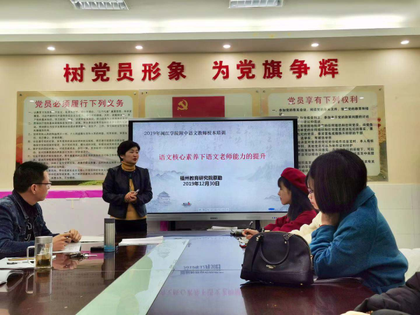 发表时间:2019-12-31 14:39 核心素养明指向 专家引领促提升 ——教育研究院蔡勤老师莅临教研组开设讲座 12月30日上午,我校语文教研组邀请福州市教育研究院蔡勤老师开设讲座《语文核心素养下语文老师能力的提升》。语文组全体老师参加,陈晨校长,连宇副校长出席了讲座。