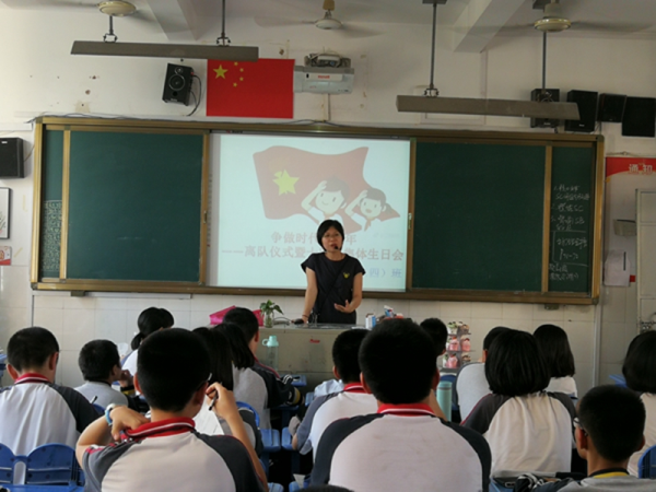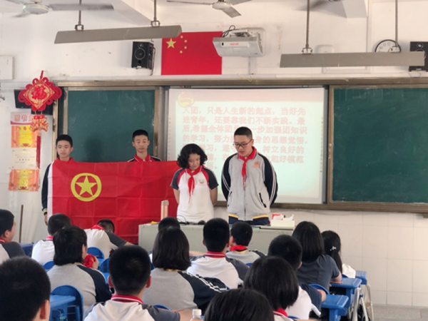发表时间:2019-06-14 11:49作者:少先队 “争做新时代好队员”六一系列活动之爱国教育(四) “争做新时代好少年”离队仪式暨14岁集体生日会 十四岁,正是花样年少和青春年华的转折之时;十四岁,是成长道路上的又一新的里程碑。让孩子们懂得十四岁的真正含义、珍惜青春年华、迈好人生第一步,我校组织初二学生开展了以“争做新时代好少年”离队仪式暨十四岁集体生日主题队会活动。少先队员们出队旗、唱队歌,正式告别金色童年,步入青春年华,一批新鲜的血液注入了中国共青团。