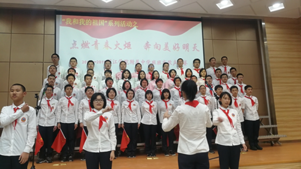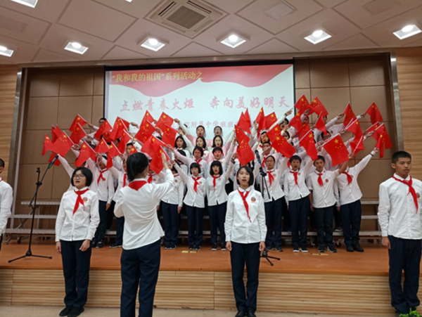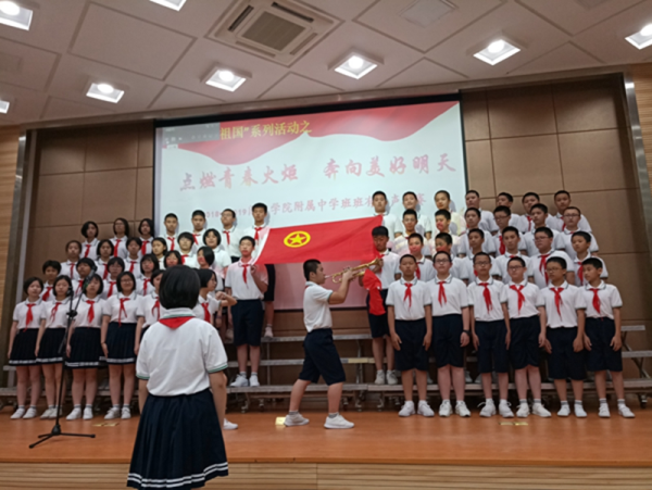 发表时间:2019-05-28 12:04作者:少先队 “争做新时代好队员”六一系列活动之爱国教育(一) “我和祖国共成长”班班有歌声 一首《红旗飘飘》率先登场,激扬的旋律,唱响闽附学子的声声期盼。5月28日,我校举行“点燃青春火炬奔向美好明天“班班有歌声总决赛。各中队积极参与,推陈出新,极力展示中队特色和风采。经过激烈角逐,初一(7)中队发挥出色,拔得头筹,二、三等奖也花落各家。