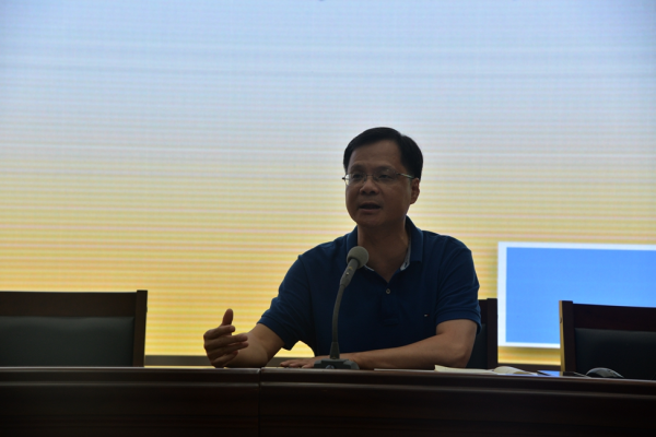 汇报结束后,俞勇校长围绕大会主题作总结发言。俞校长充分肯定此次研讨会取得的实效,向代表们都能以主人翁的精神为学校谋发展并提出很多好的建议与意见表示感谢。俞校长回顾了学校在过去一学年中取得的成绩,特别指出学校被推荐为全国文明校园培育对象,先后在福州三中作为市属校代表在福州市中小学党建工作推进会和文明校园创建推进会上交流分享经验,办学成效获得社会各界认可以及2019届中高考成绩的提升,离不开全校师生的团结奋进,学校向全体师生表示感谢。新学年来临在即,俞勇校长向大会阐述了新学年工作思路,强调指出:一要融入主题教育,推动教育前行,深入开展“不忘初心、牢记使命”的主题教育活动;二要抓好文明创建,对标定位答题,紧紧围绕文明校园创建“六个好”的标准,对标定位,持续营造文明创建浓厚氛围,按照创建要求认真答完题,答对题,答好题;三要科学认清形势,查找问题差距,倡导“质量立校,特色兴校”,认真贯彻落实省市教育工作会议精神,坚持规范办学不动摇,全面提高教育教学质量不动摇,狠抓学校管理不动摇,促进学校发展不动摇,全校师生心往一处想,劲往一处使,团结奋战,共同拼搏;四要强化有力措施,狠抓工作落实,要科学分工,明确职责,要狠抓教学常规管理,要扎实开展教学研究,要完善教育教学评价;五要逐步理清思路,明确目标任务,要切实认清形势和任务,认真剖析自己的优势和不足,树立强烈的事业心和责任感,开阔思路,改革创新,扎实工作,力争把我校教育教学工作提高到一个新水平。