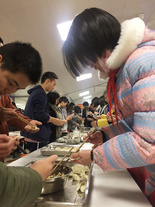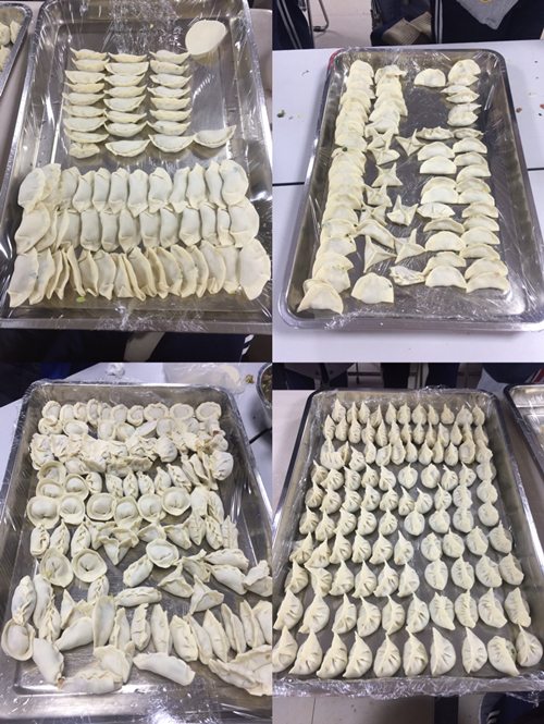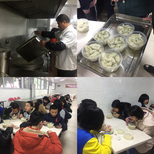 江如老师首先把前一阶段工作做了简要回顾和总结,肯定了大家工作中的成绩,同时指出存在的问题。她欣慰于本届学生干部的负责、担当、努力、和谐,希望接下来的时间大家要重坚持、高标准、严要求,要有大局意识、责任意识、集体意识,在自己的工作岗位上干到最好,不留遗憾。随后学生会主席覃娜作为干部代表做了发言。从学生干部的角度出发,总结了自己的工作经验,指出了在这一学期的工作中存在的问题,指出部分学生会干部意识弱,责任心不强等,提出未来的工作计划,做好表率,积极认真的完成上级布置的任务,工作中学会和老师交流沟通,端正自己作为学生会干部一员的态度。其他学生干部也畅所欲言,谈了自己这一年的收获,表达了未来积极工作的决心。 大会最后,江老师对下一阶段工作做了安排部署,强调大家作为学生干部,要保持一颗积极向上的心,不要轻易被学习和工作带来的压力所打败,要善于及时调整心态。在今后的工作中大家要重落实,群策群力,携手并进,出色完成各项工作。同时也希望同学们工作学习两不误,期末取得好成绩! 大会结束后,所有学生干部、德育处、团队老师集中教工食堂一起包饺子。大家在欢声笑语中各自忙碌着,大家做了精心的准备,满怀着喜悦的心情“包饺子”。有包馅儿的,有煮水饺的,气氛和乐融融。每组同学别出心裁地包着饺子并设计成各种形状,有精致小巧的柳叶饺,有小笼包似的包子饺.... 终于在大家的努力下,一碗碗热腾腾的饺子在大家的期待中被端上了餐桌,吃着大家自己包的饺子,大家感受到了青春的快乐和集体的温暖,也为今天参加寒假志愿服务回来的师生志愿者们送上热乎乎的爱心水饺,大家围坐在一起,在欢声笑语里边吃边聊,所有人的笑脸齐聚我校暖心食堂。虽然外面天气寒冷,但大家心中是热情如火的。食堂里充满了家的温暖,希望这个家的爱越来越浓,希望这个家在所有人的共同努力下会越来越温暖,2018年希望我们的家在新的一年里再创辉煌。