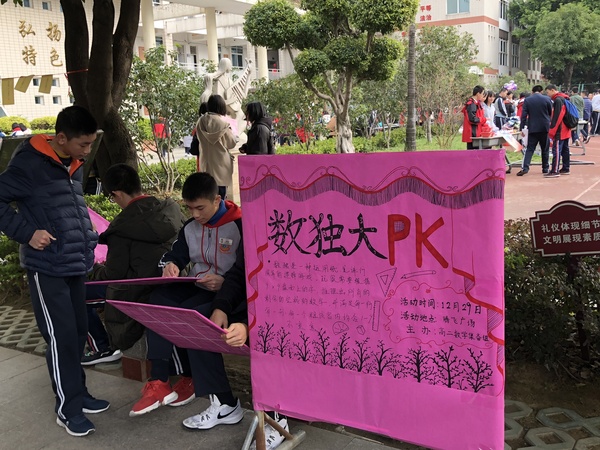 发表时间:2020-11-13 14:05 激趣 创新 益智 ---记2018数学教研组科艺节活动 2018.12.29日上午,期待中的数学组科艺节游园活动正式拉开帷幕,整场活动充满学科趣味,创新又益智,深受师生好评。 现将活动总结如下: 一、在科艺活动中培养学生的创新精神 只有当学生积极参与到科艺活动中与科技、艺术融为一体,学生主动地去探寻、领悟、体验时,对科艺的知识、技能才能真正理解和掌握,特别是创造力才能得到提高。所以在科艺节中,我们教研组设计了大量的能让学生全员参与的、能培养学生创新精神的科艺活动如:数学猜谜、五子棋趣玩、魔方、魔尺游戏、高IQ过河游戏、数字猜谜、立体几何模型制作比赛的作品展示、学生数学小论文、数学趣味手抄报展示。通过科艺节的活动,为学生提供展示技艺才能的舞台。进一步提高学生的实践能力、创新能力和整体素质,寓教于活动之中。 二、硕果累累一展闽附学生风采 数学组科艺节的各类比赛是最多的,学生能力得到锻炼的机会也是最多的,学生总是表现得很出色,展示了我校学生的风采。我们觉得这是一次最好的学生体验性活动。其实科艺节活动的组织往往是最累人的,场地大、效果好与坏又难以指挥。所以我们对活动的细节一再斟酌、几易方案,利用团队的协作精神来出色完成科艺节的各项任务,涌现出一批如杜强、祁艳、高丽英等好人、好事。在整场游戏活动中,全体师生激情投入,学生参与热情高涨,游戏表演高潮迭起,游园会场上不时传出阵阵掌声和欢笑声,那活泼多样的形式、生动丰富的内容、幽默诙谐的表演,给在场师生们留下了深刻而难忘的印象,游园会获得了圆满成功。“传播数学文化,展现数学魅力,提高数学素养”,是我们这次活动所倡导的。通过本次活动,相信全校的同学们会进一步提高数学学习的兴趣,获得数学学习的动力,加深数学知识的底蕴