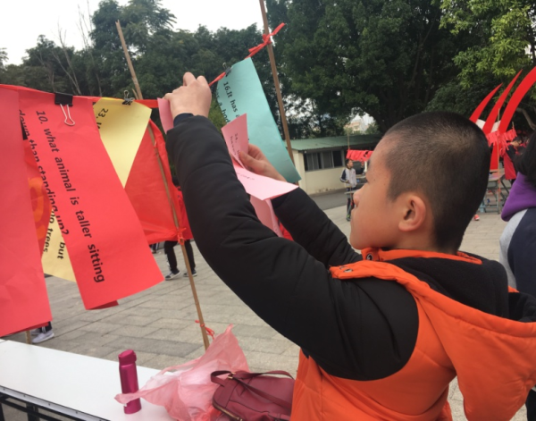 游戏动脑又动手,“抢凳子”、“Lucky Wheels”使现场高潮迭起,欢呼声不断。 现场还进行了“绘本阅读比赛”。这些小报是从初一年学生的作品中精挑细选而出,再由科艺节的现场观众投票,最终产生冠军。