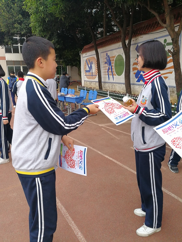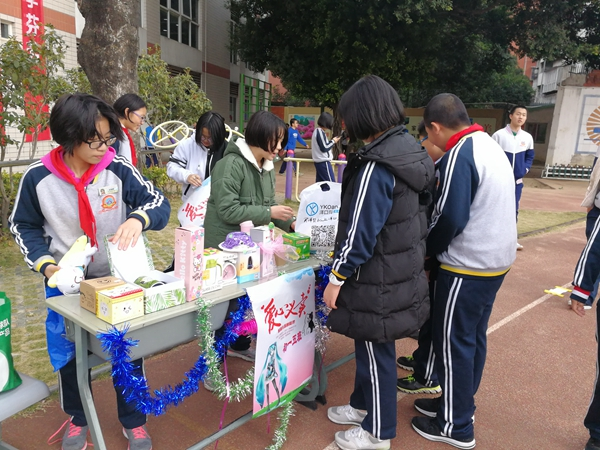 发表时间:2017-12-30 14:19作者:少先队 为了培养学生关爱他人,感恩同伴,乐于助人的思想品质,凝聚温暖正能量,弘扬社会主义核心价值观,进一步丰富校园生活,2017年12月29日,我校在田径场举办“青春践行十九大 爱心义卖暖人心”援助宁夏贫困学生爱心义卖活动。 活动前期,由校德育处、团队联合部署,班主任积极做好爱心义卖活动的发动工作,各班设计新颖的活动方案和海报,每位学生自愿捐出手中闲置不用但又完好无损的学习用品、小玩具、纪念品等作为义卖物品。学生都准备好一定的零用钱积极参加活动,人人都献出一份爱。 活动现场,操场上摆满了教师摊位、各班级的摊位,社团摊位,整洁而有序,全校师生积极踊跃参加。义卖区物品应有尽有、琳琅满目,同学们的叫卖声此起彼伏,学生们偶尔的砍价也变得十分有趣,老师、同学心满意足地拿着钟情的物品离开,大家脸上洋溢着笑容,气氛其乐融融。 在这次的义卖活动中,党团员教师发挥了先锋模范作用,体现了强烈的社会责任感和乐于奉献的品质,老师们用自己的实际行动去帮助社会上需要帮助的人,活动虽小,但意义深远。我们将所有义卖所得经费捐献给宁夏的贫困孩子,虽然金额不多,但是可以让他们感受到温暖和希望,我们将会弘扬雷锋精神,让这些爱心善举一直持续下去,让这种正能量凝聚起来感召更多的人,让师生间浓浓的感恩之心在校园里传递和延续着。