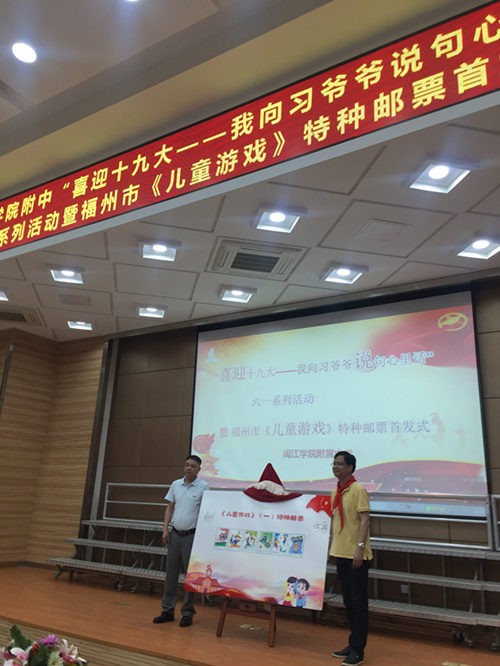 闽江学院附中“喜迎十九大——我向习爷爷说句心里话”六一系列活动 暨 福州市《儿童游戏》特种邮票首发式 二维码