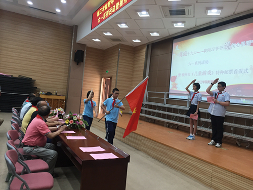 发表时间:2017-05-31 14:23作者:江如 为了深入学习宣传贯彻习近平总书记系列重要讲话精神,鼓励少年儿童围绕喜迎党的十九大,自主表达纯真的情感和真实的心声,教育引导少先队员听党的话,跟党走,“从小学习做人、从小学习立志、从小学习创造”,培育和践行社会主义核心价值观,我校携手福州市邮政局借助福州“儿童游戏”邮票首发推动我校少先队活动,激发学生的运动兴趣。在5月31日,六一节来临之际,我校决定开展“喜迎十九大——我向习爷爷说句心里话”六一系列活动,暨福州市《儿童游戏》特种邮票首发式。 出席今天仪式的集邮协会的领导、来宾有福州市集邮公司李建华经理、福州市集邮协会林啸天会长、省关工委老同志林国山、海军集邮研究会福州分会房贞钊伯伯,乐天泉社区郑芬书记,我校俞勇校长、刘旭光副校长以及德育处、团队的老师和初一大队的师生、家长志愿者参加本次活动,参加活动的还有我市的集邮骨干和爱好者。 仪式由班班有歌声的冠军队伍——初一(6)中队的原创歌曲《拥抱未来》拉开了序幕。邮政局李经理宣读邮票发行公告。在场师生观看了《儿童游戏》邮票的宣传片,队员们更加了解儿童游戏。李经理和俞勇校长共同为《儿童游戏》邮票揭幕,并在展板上签字留念。 俞勇校长在发言中就我校能承办首发式对福州市邮政局、福州市集邮协会表示了感谢,他希望全校师生能真正理解《儿童游戏》邮票的内涵,他代表学校领导向辅导员们表示亲切的慰问,向全体少先队员们致以节日的问候,真诚地希望全体队员们能珍惜今天这来之不易的幸福生活和美好的学习环境,听党的话,跟党走,从小多参加体育锻炼,既强身健体又有益心智,既成人更成才,学会感恩,回报社会。 5月,我们学校大队部组织开展了“喜迎十九大——我向习爷爷说句心里话”手绘明信片设计大赛。会上展示了获奖作品,领导、来宾对获奖的同学进行表彰。刘旭光副校长宣读了省、市、校少先队获奖的老师、同学的表彰决定。领导和来宾给获奖代表颁奖,希望他们能再接再厉,取得更好的成绩。 初一大队带来诗朗诵《党的中国梦》,表达了少先队员的中国梦。初二少先队员代表举行了离队仪式并发表了退队宣言,表明心中依然树立着对红领巾的敬仰与尊重,一起努力书写自己的青春。 会后,领导、老师、同学们一起参观了邮展,集邮骨干向师生介绍邮展内容。大队部精心准备了踢毽子、滚铁圈等一系列儿童游戏,让少先队员们尽情玩耍,获得通关印章,凭通关卡获得相应的奖品。 趣味游戏之后,各中队在班级开展“喜迎十九大——我向习爷爷说句心里话”主题队会,组织少先队员分享交流自己提交的“心里话”和自己看到的最能引起共鸣的其他小朋友提交的“心里话”。少先队辅导员通过点评交流活动,进一步引导少先队员立志向、有梦想,热爱党,热爱祖国,热爱人民,为实现中华民族伟大复兴的中国梦时刻准备着。 本次六一活动建设性的与《儿童游戏》特种邮票首发式相结合,体现了我校良好的校园文化环境建设成果。本次活动将推动我校进一步发展学生体育运动,激发学生的运动兴趣,也让更多的学生了解集邮这一有益的爱好,领略到集邮文化。