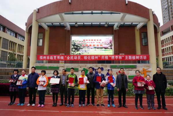 发表时间:2017-03-06 14:29作者:陈美婷 “我和小树共成长”征文颁奖仪式 根据市委、市政府《关于开展“全民动员、绿化福州”活动的通知》精神,今年2月份我校团委积极引导我校学生参与福州市教育局举办的福州市创建国家森林城市“我和小树共成长”征文比赛。在本次征文比赛中,我校推选的7份作品均荣获优异成绩,得到了教育局领导的肯定和表扬。 3月6日上午,由我校陈祁罕副校长带队,团委陈美婷老师带领初二(8)班陈钰涵同学作为我校获奖学生代表参加了本次由福州市教育局和福州市林业局联合举办的福州市创建国家森林城市“我和小树共成长”征文颁奖仪式。 颁奖现场