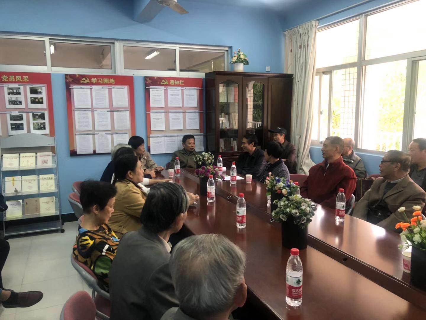 活动前,大家聚在退休支部活动室,嘘寒问暖,共叙家事校情,一起学习习近平新时代中国特色社会主义思想和党的十九大精神,为学校发展献言献策,凝聚力量。