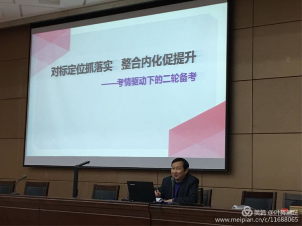 会议邀请湖北省特级教师、武汉市教育科学研究院高中语文教研员袁汉杰老师给全市高三老师作《对标定位抓落实,整合内化促提升---考情驱动下的二轮备考》指导讲座。