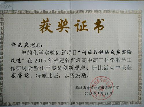 化学组许东庆老师参加全国实验教学创新研讨会并获省二等奖