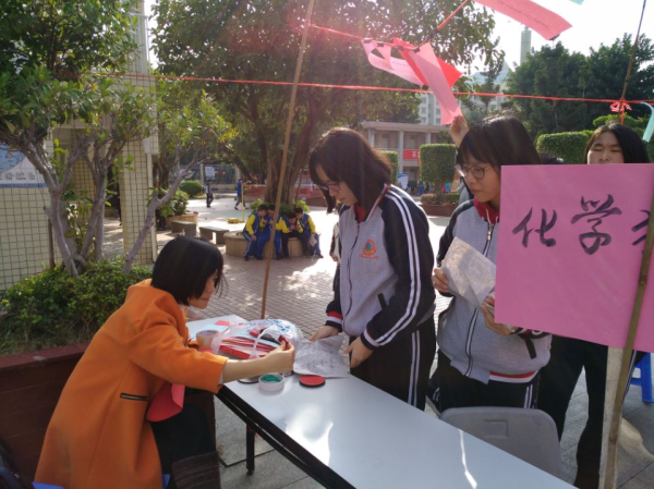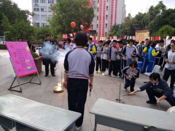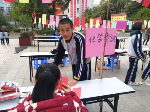 发表时间:2017-12-29 17:08 2017年12月29日下午,伴随着冬日里暖阳,伴随着我校三十年华诞的喜庆气氛,闽江学院附中化学组以饱满的热情开展校第十二届科艺节活动迎接新年的到来。化学焰火、化学猜谜、物质结构模型展、套圈夺宝等项目吸引了大批学生前来参与。让人欣喜的是,以化学知识为载体的猜谜、答题等环节吸引了相当一部分初一、初二学生的热情加入。他们对化学知识的了解让在场的老师惊叹不已;在模型制作活动中,高二学生超强的空间想象力、立体几何知识和动手能力让高二年段老师非赏欣慰;众多高一学生以非常高的热情参与了这次活动的组织,并再一次在现场感受铝热反应的壮观现象,他们得到了化学组老师的一致赞扬。
