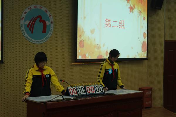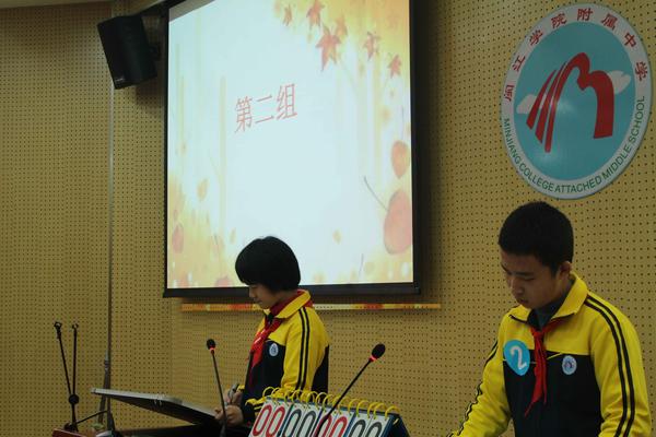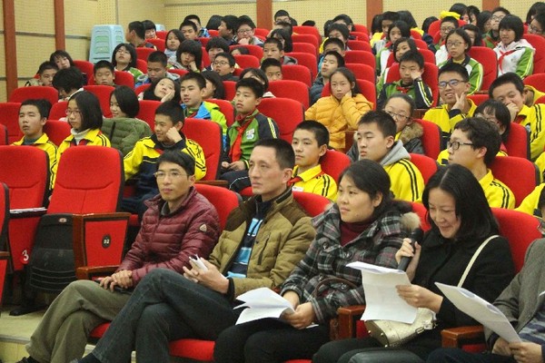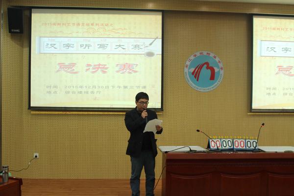 发表时间:2015-12-30 17:11 2015年12月30日下午第三节课,语文组举办的汉字听写大赛总决赛在综合楼报告厅举行。本次活动也是我校科学艺术节的重头戏之一,得到了学校领导的高度重视和大力支持,俞勇校长、谢海泓书记、陈祁罕副校长和连宇副校长以及各处室的主任都观摩了本次比赛。比赛由陈月老师主持,初一初二年段的语文老师及近300名学生出席本次活动。 赛场上,参加本次决赛的八位选手分为红蓝两队,两两对抗,激烈角逐。台上选手有的自信从容,有的紧张忘字,有的机智应对。台下观众也摩拳擦掌,跃跃欲试。他们时而为选手听写正确热烈鼓掌,时而为选手离场扼腕叹息。经过紧张的角逐,最终初二(5)班的唐采薇脱颖而出,获得冠军,初二(6)班的洪祯获得了亚军。学校领导为获奖选手颁发了奖状和奖品。 颁奖过后,连宇副校长做了讲话。他祝贺选手的精彩表现和大赛的圆满成功,肯定了语文教研组老师们的辛勤付出。他希望每一位学生都能热爱祖国的语言文字,在一笔一划的汉字书写中感悟汉字的深厚底蕴,弘扬中华传统文明。 本次汉字听写大赛受到学校领导的高度重视,多次部署本次工作,还专门拨出经费为参赛选手购买听写用书。经过语文组的精心组织,本次活动从11月底初赛起,已历时1个月,在初一初二100多名学生中通过多次的淘汰赛和排名赛,优中选优,最后八名选手脱颖而出。本次决赛后,他们将在黄贤明和陈月老师的带领下,继续进行集训,将于2016年2月份作为我校代表队参加福州市中学生汉字听写大赛的角逐。 我们希望本次活动能唤起学生对传统文化的记忆,感受到书写汉字的乐趣和学习知识的快乐,也唤起更多人对汉字传承和延续的思索。 赛前宣言