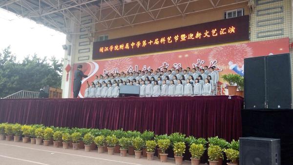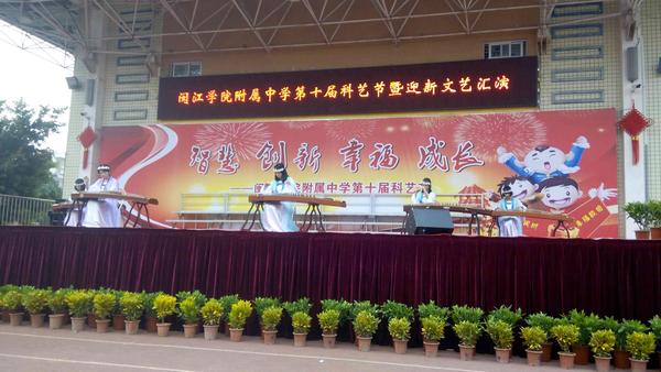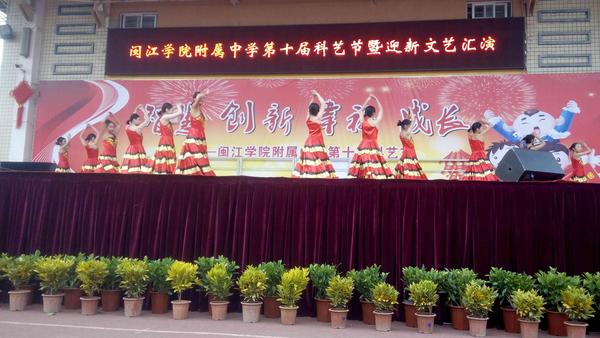 发表时间:2016-01-01 17:16 2015年12月31日下午,闽院附中迎新文艺汇演活动完美落下帷幕。学校领导对此项活动高度重视,并对此项活动进行了精心筹划和全面部署。音乐组教师也是吃苦耐劳,利用课余时间加班排练演出节目,配合团委精心挑选节目,对整台文艺汇演进行多次精心彩排。配合后勤组做好舞台设计、音响设备安装调试等工作。 本次活动以“智慧创新,幸福成长”为主题, 20个节目中包括歌曲、舞蹈、器乐、小品、相声、音乐剧、诗朗诵、武术表演等,形式多样、异彩纷呈。营造了浓厚的校园艺术氛围,丰富了校园文化生活,推动了学校艺术教育和精神文明的发展。