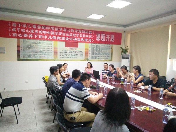 发表时间:2017-10-10 17:22作者:鄢坚 课题研究路上,我们携手共进 ——福州市教育科学研究“十三五”规划2017年度3个课题开题 《基于核心素养的中考数学复习教学案例研究》、《基于核心素养的初中数学课堂运算教学实践研究》、《核心素养下初中几何微课设计研究和应用》3个福州市教育科学研究“十三五”规划课题开题2017.9.29下午在我校正兴楼202举行,4位课题组专家、34位来自五区八县的课题组成员参加了该项活动。 在开题会上,福州教育研究院数学科教研员李霞老师做了高观点下数学核心素养的解读:学科核心素养=学科知识+学科活动,学科核心素养形成的载体---学科知识;学科核心素养形成的路径---学科活动,能力只有在需要能力的活动中才能得以培养…为我们课题研究指明方向和方法。课题负责人鄢坚、郭海燕做了开题报告,对各自课题的选题的意义及价值(理论价值或应用价值)、国内外研究现状述评、关键性概念的界定、研究目标与内容、研究过程与方法等作了阐述。永泰一中张祖冬、福州19中陈中华、福州18中詹春华等老师对课题研究作了发言和期许:课题研究路上,我们携手共进。