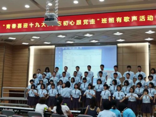 发表时间:2017-05-25 17:33作者:陈玉娣 2017年5月23日下午,我校在多功能厅举行了主题为“青春喜迎十九大,不忘初心跟党走”的“班班有歌声”活动总决赛。 在德育处的精心部署下,各班级紧紧围绕中心主题,认真筛选出喜欢的优秀经典歌曲。音乐老师利用音乐课和课余时间教唱歌曲,并对歌曲进行艺术处理。各班主任也积极配合音乐老师,跟班听课,课后还亲自监督班级学生背诵歌词,同时也紧锣密鼓地安排学生一起选购演出服装。经过紧张激烈的初赛,最后入围决赛的有1 1个班级,在决赛过程中,各班同学以高涨的热情、饱满的精神,深情地演绎了对党和祖国的热爱和崇敬之情。 本次活动活跃了校园的艺术气氛,丰富了学生的校园生活。以音乐怡情,以音乐修身,以音乐明智。 本次“班班有歌声”活动获奖名单如下: 一等奖:初一(6)班《国歌》、《拥抱未来》 高二(6)班《国歌》、《光荣与梦想》 二等奖:初一(5)班《国歌》、《少先队队歌》 初一(2)班《国歌》、《保卫黄河》 高一(3)班《国歌》、《在灿烂阳光下》 高一(8)班《国歌》、《国家》 三等奖:初二(8)班《国歌》、《春暖花开》 高二(1)班《国歌》、《走向复习》 高一(7)班《国歌》、《迎风飘扬的旗》 高一(6)班《国歌》、《在灿烂阳光下》 初二(4)班《国歌》、《咱当兵的人》