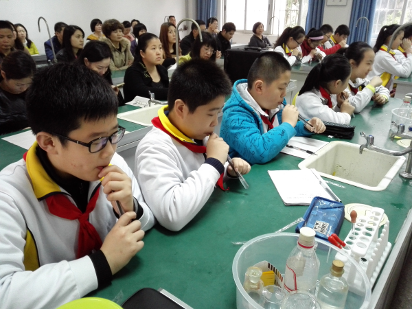 2016年3月19日上午, 姜淼老师风趣幽默地为群小师生和家长们开设了一堂精彩的科学课。课上,有趣的化学小魔术、化学小实验接二连三地展现在家长和学生的面前,一幕幕精彩纷呈、匪夷所思的化学现象让天真好学、初涉科学殿堂的学生被深深吸引住了,不时发出阵阵惊叹。