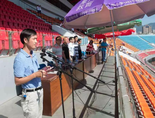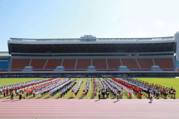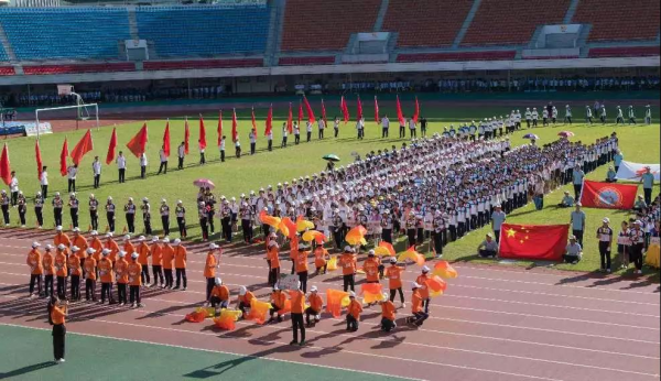 9月27日上午,福建省奥林匹克体育中心田径场上彩旗飘扬一片欢腾,闽江学院附属中学全校师生齐聚田径场参加运动会开幕式。校长俞勇,党委书记刘祯,副校长刘旭光、连宇及各部门主要负责人出席开幕式,开幕式由教务处副主任陈锋主持。