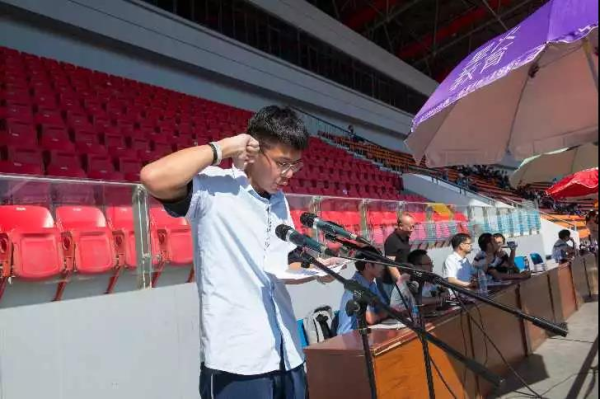 随后,运动员代表和裁判员代表栗奎权老师分别发言,表示将本着“更高、更快、更强”的运动精神,坚持“公平、公正、公开”的原则,积极投身到运动会各项赛事和工作中去。