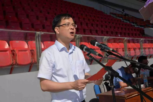 9时30分,在庄严的升国旗、奏唱国歌仪式之后,俞勇校长宣布第三十一届田径运动会开幕并致开幕词,他代表学校对运动会的举行表示热烈祝贺,向工作人员表示衷心感谢,并预祝运动会圆满成功。 俞校长指出,体育是文化教育的重要组成部分,学校一贯高度重视体育运动。体育运动有助于同学们增强体质,形成竞争意识和团结协作精神,塑造勇敢顽强的品格,提升超越自我的品质,坚定迎接挑战的意志。俞校长希望每位运动员安全、文明、规范参赛,遵守规则,服从裁判,赛出成绩,赛出风格;希望全体裁判员、工作人员忠于职守,热情服务,严守规则,公平公正;希望没有比赛项目的同学,要服从大会管理,做文明观众;希望各班加强安全卫生教育,保持良好的大会秩序;希望全体闽附人团结拼搏创佳绩,齐心协力奏凯歌。